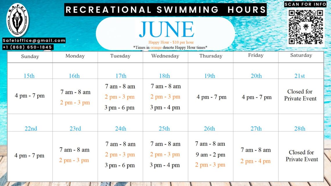 Join SAFEL in reaching your relaxation, exercise, or swimming goals!🌊 Enjoy recreational swimming at our poll for $30/hr during recreation times and $10/hr for community swim. Don’t miss out on this offer! #SwimTime #PoolDays #Relaxation Station 🌞